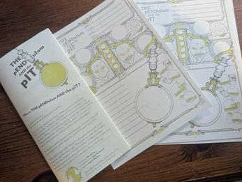 THE pENDulum AND the pIT comes in the form of a folded leaflet (A4 when unfolded) and character sheets. The picture included is of the RPG printed using the Riso Printing process, the downloads are a smoother finish.